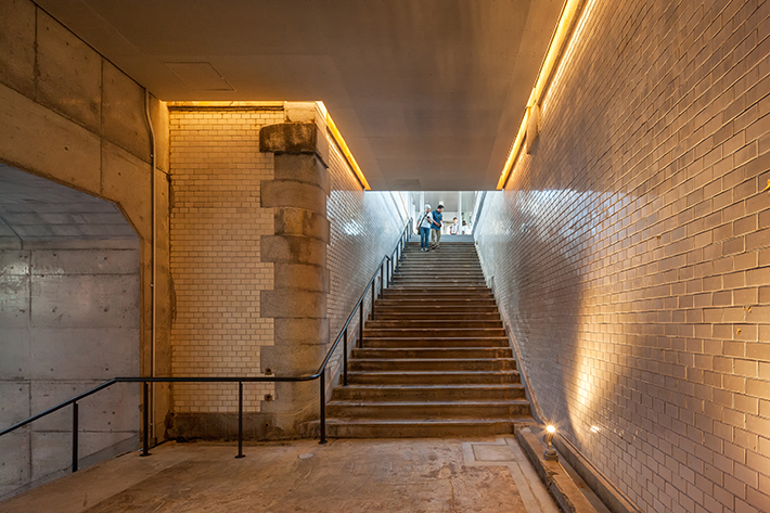 中央線神田駅と御茶ノ水駅の間にかつて存在していた万世橋駅。昭和18年に休止となったものの、赤煉瓦の万世橋高架橋の中にホームや階段など、駅の施設が現在も一部残っています。これら歴史的価値のある遺構を今でも見ることができるのが、「マーチエキュート神田万世橋」。昭和18年まで営業していた赤煉瓦造りの万世橋駅の構造を生かした商業施設となっているだけでなく、旧万世橋駅の階段や、プラットホームを間近に感じることができます。